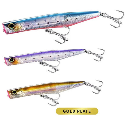 The Shimano Coltsniper Gabbro 175F Flash Boost 175F is a slim silhouette popper designed for Pelagics. It is characterised by its nearly vertical buoyancy, ensuring stable action even in rough conditions where pencil baits may struggle to attract fish. A key feature is its user-friendliness when employing a non-stop popping technique. By creating continuous sound and bubbles from the surface to the water column below, the lure mimics the panicked movements of small fish, effectively stimulating the predatory switch in wary and less active Pelagics, while minimising the chances of them seeing through the lure.